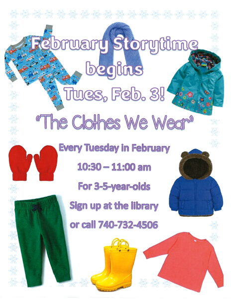 January definitely gave us a dose of winter, and now that we’ve thawed out, why not see what’s new in February at the library? Our preschool age Winter Storytime kicks off Tuesday, February 4 from 10:30 to 11:00. Just call the library at 740-732-4506 to sign up your 3-5-year-old. The theme is “Friendship & Kindness”. […]